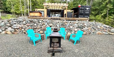 A unique Shuswap experience in this beautiful converted Sea Can home with the option to also rent the Holiday Trailer (seasonal). Complete with a Buoy Bar and Hot Tub!