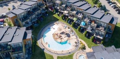 Stunning Waterfront Townhouse with big sandy beachfront, Pool, Hot Tub, Dock and Buoy! Take in the amazing views of Copper Island and Shuswap Lake from either of the 2 cozy balconies.