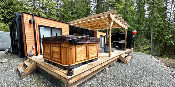 Think outside the box when it comes to planning your next Shuswap getaway! A private, quiet cabin surrounded by trees with a huge deck that invites friends to gather at the Buoy Bar, soak in the 6-man HOT TUB, and chill by the fire. Buoy included!